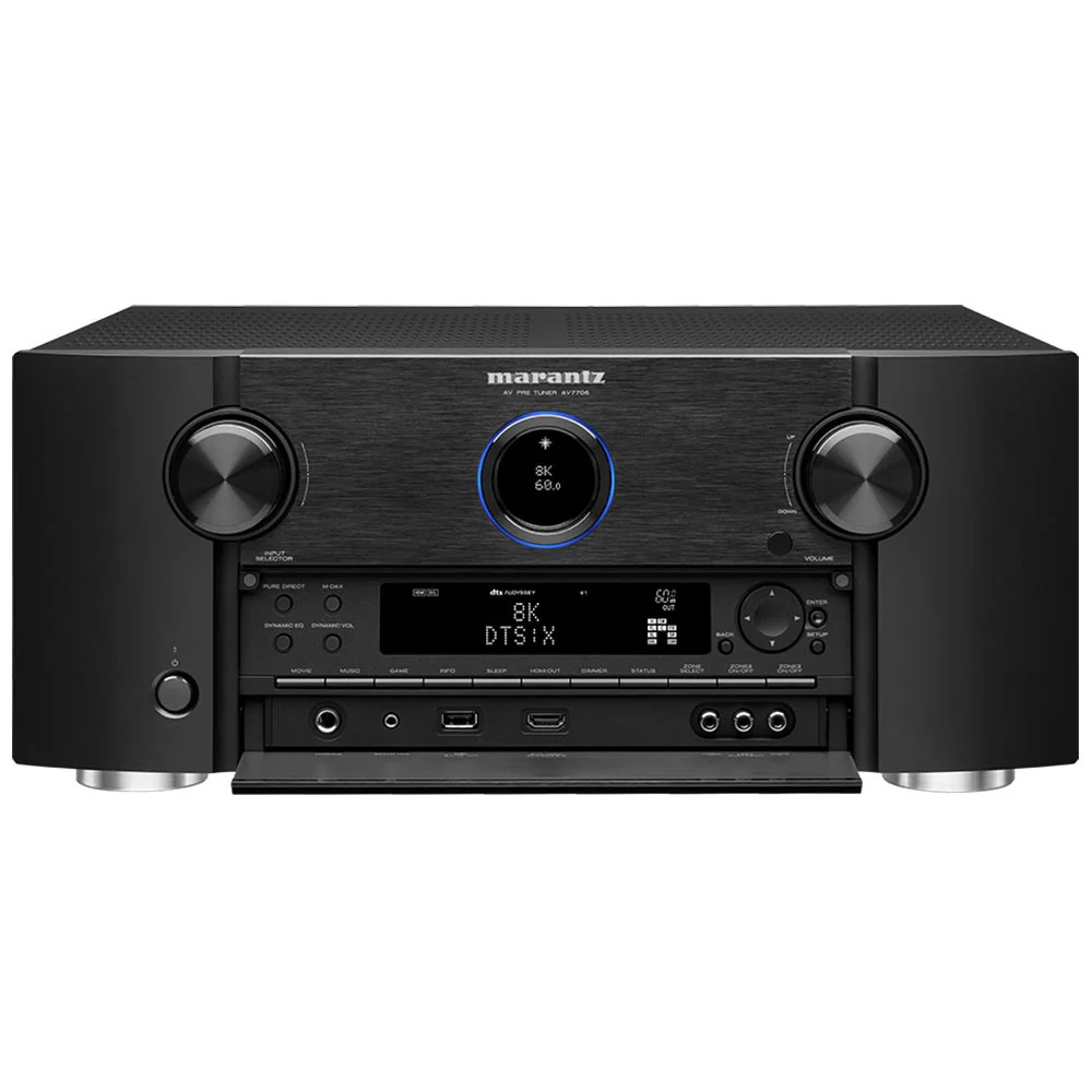 - Marantz AV7706 home theater preamp/processor with 11.2-channel processing